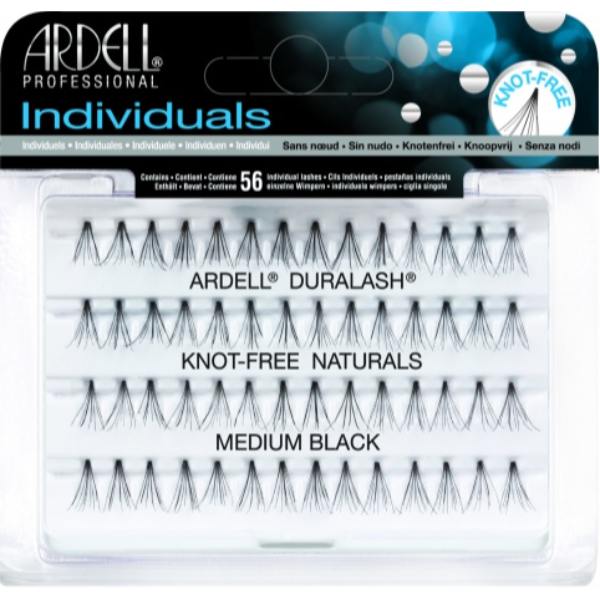 Ardell Duralash Naturals Knotted-free Medium Black. Las pestañas Individuales permiten crear cualquier look. Este pack contiene 56 grupos de pestañas negras y medianas, sin nudo. Aporta volumen y espesor a las pestañas finas. Deben aplicarse con el pegamento de pestañas LashTite.