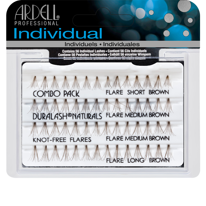 Ardell Combo Pack Duralash Naturals Knotted Free Brown. Pack de pestañas individuales sin nudo con pestañas en 3 longitudes: cortas, medias y largas. Crea un look diferente y personalizado con la línea Duralash Naturals! Este paquete contiene: 14 grupos de pestañas cortas, 28 medianas y 14 de largas para que puedas usarlas en los extremos exterior e interior del ojo o en el centro. Diseña pestañas a medida. Añádelas a las esquinas exteriores para conseguir un glamour magnífico o rellena las áreas escasas de las pestañas naturales.