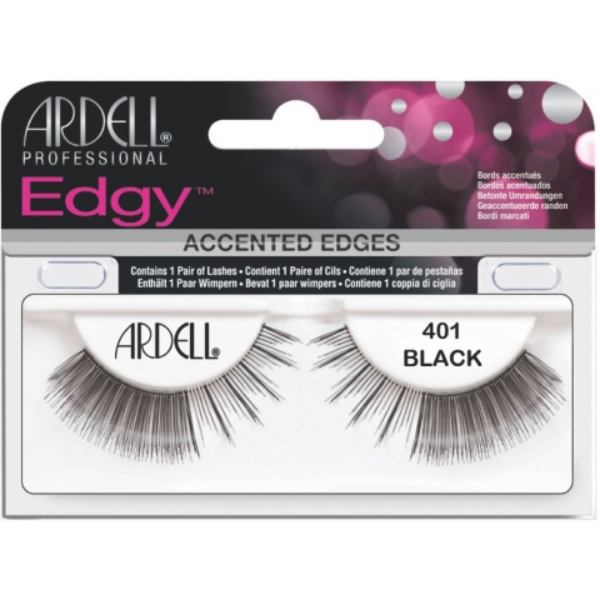 Ardell Edgy 401 son las pestañas postizas que aportan longitud y volumen a tus pestañas con diseños originales y diferenciales. Separadas gradualmente, son más gruesas en el borde exterior para un efecto más natural.