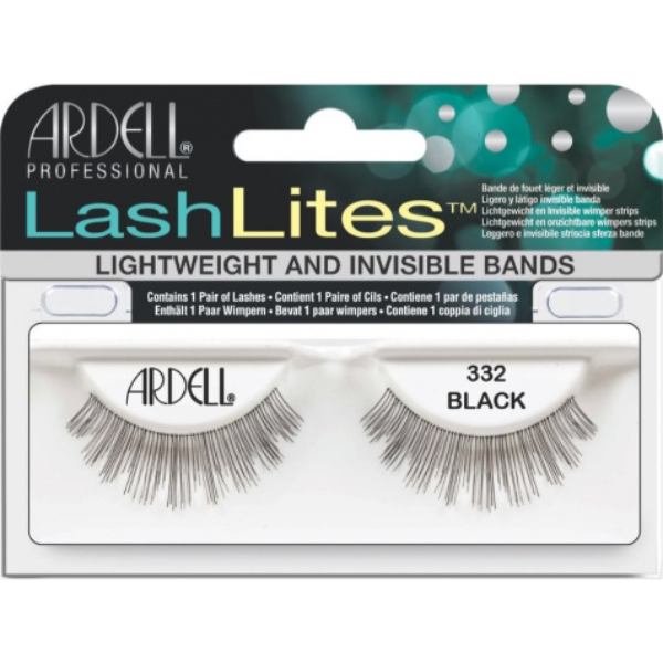 Ardell Lashlites pestañas 332. Color negro. Muy naturales. Volumen ligero, longitud corta. Banda invisible en la base de las pestañas. Ideales para bodas. Color negro. Reutilizables hasta 5 veces. Aspecto natural. Fáciles de aplicar. Retirar cuidadosamente. Aplicar una banda de adhesivo LashGrip. Esperar 30 segundos y colocar.